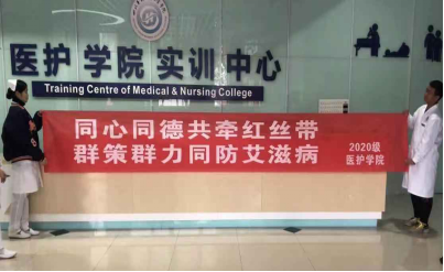 为营造全民参与艾滋病防治工作的良好氛围,医护学院举办“同心同德共牵红丝带,群策群力同防艾滋病”系列主题活动,积极倡导全校师生树立正确的防范艾滋病意识、掌握艾滋病相关知识,促进身心健康发展。