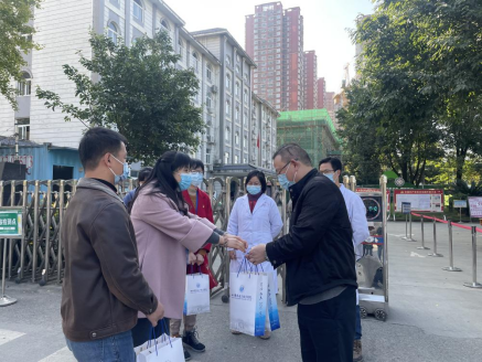 图二 医护学院党支部书记任燕为医护人员送上慰问品