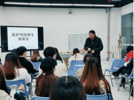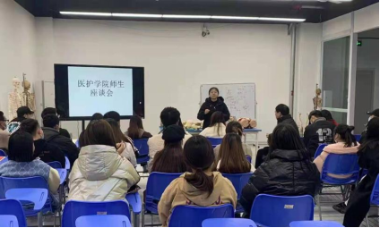 为了进一步开展好医护学院的教育教学和学生工作,2021年11月25日,医护学院在知行楼解剖实训室开展了师生座谈会。本次座谈会主要围绕医护学院学生学习现状以及学生对就业的困惑展开,目的在于解答学生疑惑,为今后学生学习和发展寻找新的突破。此次会议由邓敏老师主持本次会议,伍小飞院长、任燕书记、邓敏副书记以及21级辅导员赵佩云老师出席本次座谈会,学生代表主要是医护学院学生会主要干部、各班班长以及学生代表。