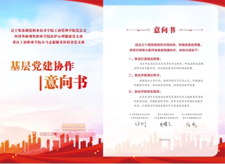 主题党日活动中,三个基层党组织联合发布了《基层党建协作意向书》。三方就进一步结合所在地红色文化及学校专业特色,积极推进特色鲜明的精品党课建设;持续创新学习交流方式,积极组织开展联学活动;积极探索跨学校、跨专业的学生思想政治教育互动,共享优秀学生思想政治教育成果和学生志愿服务活动典型经验;以党建为引领,持续强化学生思想政治教育,共同探索跨地域、跨院校的联学联建等方面达成一致共识,期待开启高职院校基层党建协作“手拉手”崭新篇章。