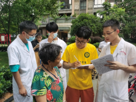 “医路有我”实践团队的志愿者们在西河街道居委会负责人的带领下对雄飞广场、恒雨后现代城等小区的近60户居民进行了入户调研,主要以问卷、访谈两种形式对社区居民的健康素养和健康需求情况做了调查。