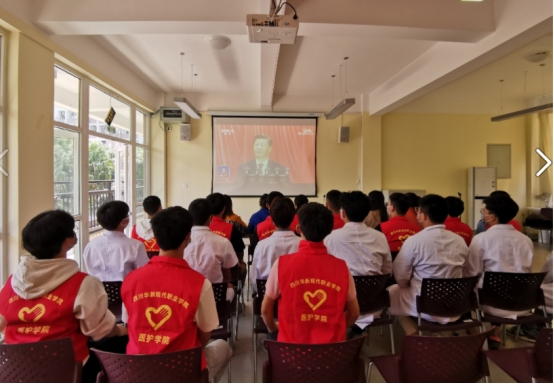 10月16日上午,中国共产党第二十次全国代表大会在北京人民大会堂隆重开幕。医护学院组织党员教师及入党积极分子师生代表,集中收看了中国共产党第二十次全国代表大会直播盛况,以隆重的仪式迎接大会胜利召开。
