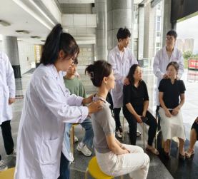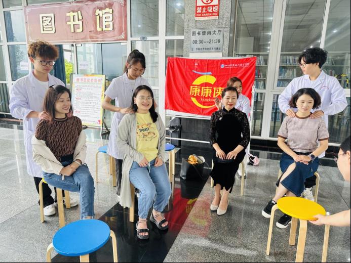 9月22日医护康养学院“康康侠”社团在图书馆一楼平台开展了以“健康中国,医路有我”为主题的“医路有我校园义推系列活动”。康康侠社团15名同学作为志愿人员,为有肩颈疲劳、疼痛困扰的师生进行公益推拿服务。