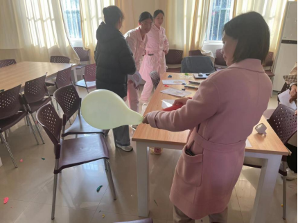 最后环节,王老师为每位参与者分发了3枚气球,请所有人给第一个气球吹一点气,给第二个气球加压直至大小适中,给第三个气球不断施压直至爆炸,并描述三只气球所呈现的不同状态,促使同学们正式压力存在的意义,保持适中的压力,在学习生活中勇往直前。