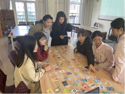 活动开始前,王老师与同学们共同探讨了本次活动中大家需要遵守的真诚分享、相互支持、保护隐私等原则,为大家创造了一个安全的自我探索氛围。活动中,王老师讲解了OH卡牌的来历和用途,让大家对OH卡牌有一个基本的认识。接着,请每位参加者选取一张自己感觉最强烈的卡牌,感受其与自身的连接,并结合卡牌进行自我介绍。接下来,请团体成员选择一张自己完全不喜欢的卡牌,并转变认知,去寻找卡牌中的积极因素。此环节基于积极心理学原理,启发了参与者学会从不同的角度看待问题,保持阳光乐观心态。最后,请同学们选择一张卡牌代表自己最近的困境,再抽取一张卡牌代表自己的资源,并分享自己面对两张卡牌的想法和感受,进一步引导同学们思考如何运用自己的潜在资源应对困境。同学们之间互相分享讨论,体会彼此的观点与视角,在同辈交流中产生对自己当前问题的新的领会。