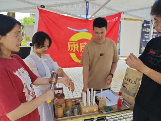 2024年6月6日,四川华新现代职业学院康复治疗技术“康康侠”社团,由指导老师杨立军老师带领社团社员,中午11:00-2:00在二号食堂门口开展“遇见中医之美,端午节及中华传统文化知识推广”活动。
