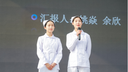图四:四川省护理技能赛项二等奖姚焱、余欣做经验分享