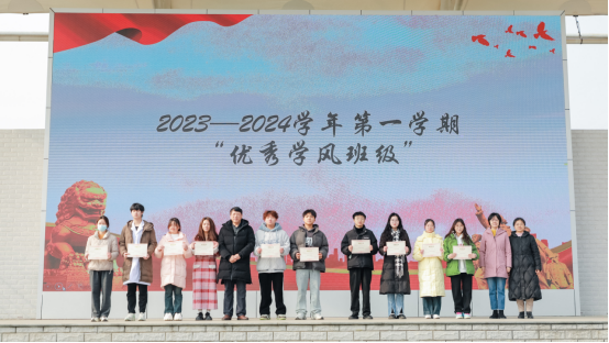 大会首先对2023-2024学年第一学期涌现出的14个“青年大学习优秀团支部”,10个“优秀学风班级”进行了表彰,院长伍小飞、副院长陈蒂丝、党支部副书记邓敏为获奖集体颁奖,营造了我院典型示范、榜样引领的育人氛围。