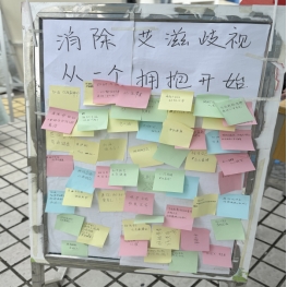 围绕今年宣传日主题,各二级学院积极动员学生广泛参与、不断创新宣传模式,灵活采取线上、线下途径进行宣传教育。包括:开展防艾知识竞赛、组织学生观看禁毒防艾影片、红丝带制作、暖心便签传递、“消除艾滋歧视,从一个拥抱开始”、“与我击掌,防止艾滋”、“为艾助力”“艾你知多少”、“野火游戏”等互动小游戏,开展防艾主题班会等。活动现场发放防艾宣传手册、张贴宣传海报、横幅、展板及利用新媒体等方式加大宣传力度和扩大影响范围。此次防艾宣传周活动形式创新、主题新颖,学生关注度高、吸引力大。活动现场气氛热烈、学生参与度高,获得了较好的宣传效果。活动中,学院红十字会的志愿者们也积极协助西河镇公立卫生院为我院为师生开展免费健康检测,提高学生检测意识,促进早发现、早治疗。