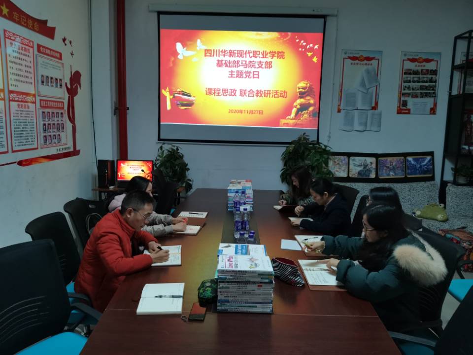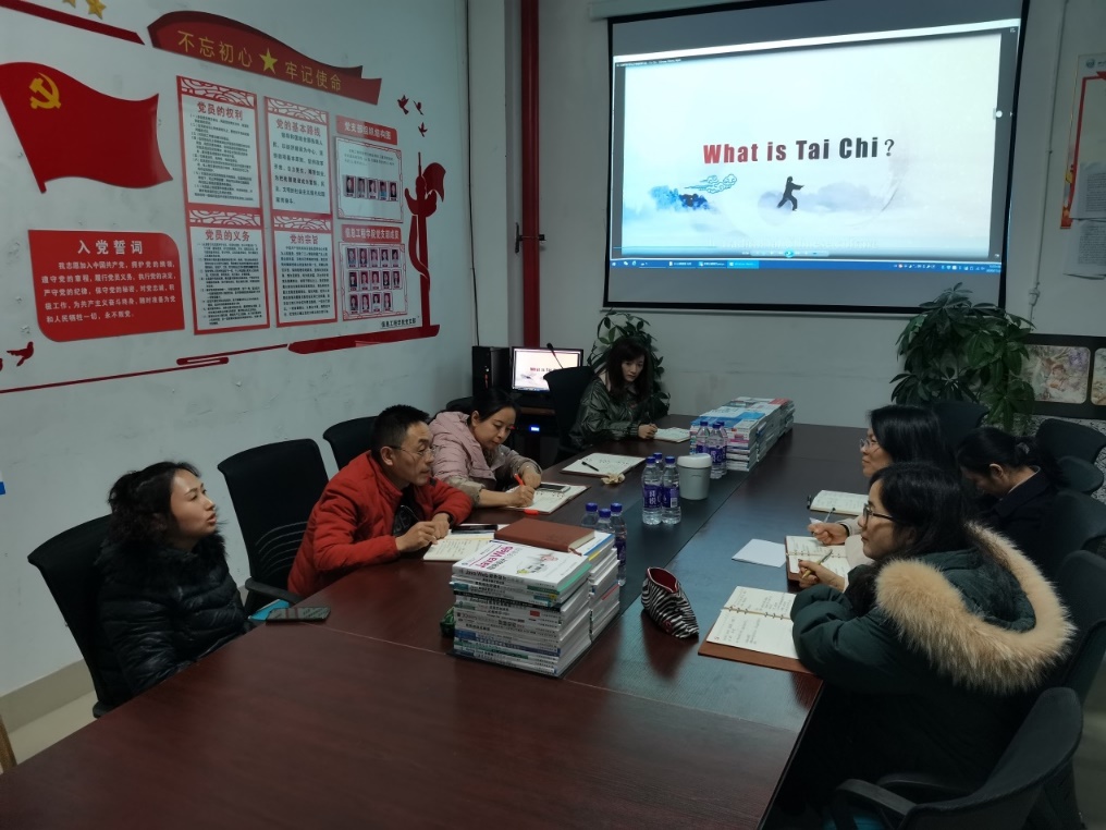 经基础部马院党支部推动和安排,基础教育部全体英语老师与马克思主义学院全体思政课专职教师于11月27日中午12:30在明德楼111室召开联合教研会,以课程思政为主题,聚焦课程思政融入公共课程的路径,就如何实现教学新突破展开交流。支部特邀基础教育部张丽妍副主任分享获得“外教社杯”全国外语微课大赛省赛特等奖的英语微课视频的设计思路和创作过程,英语教师、党员何曼介绍了微视频大赛团队分工协作的具体经验。参会的老师们就如何将思政元素融入公共课教学、如何准备教学比赛等内容展开了深入的交流。