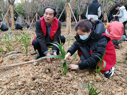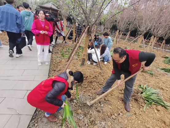 图1:学院党委副书记解登高来到基础部马院党支部参加植树活动