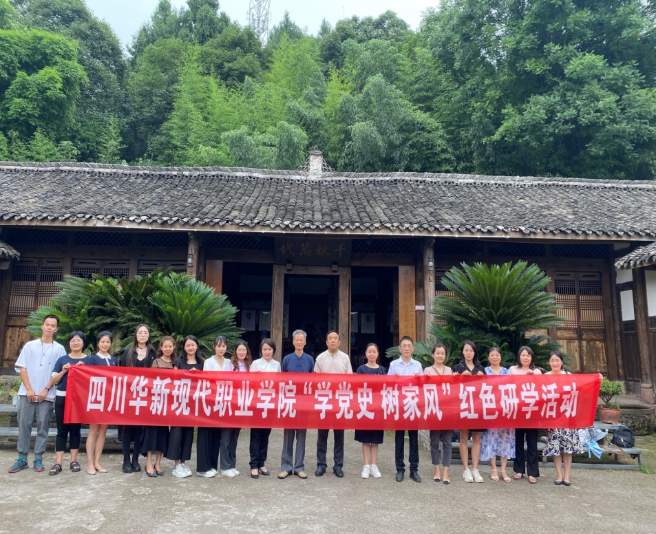 【马克思主义学院报道】学党史,树家风。为深入学习贯彻习近平总书记“七一”重要讲话精神,加强学院思政理论课实践教学,开发建设“四史”思政课程,推动师生“四史”学习教育, 7月5日,四川华新现代职业学院与五凤溪家风文化学院签订共建思想政治教育实践基地协议,并联合相关二级学院开展红色研学活动。马克思主义学院承办了该活动,并组织相关二级学院党员和教师代表13人全程参加。马克思主义学院院长何敏、五凤溪家风文化学院院长贺杰出席授牌仪式。