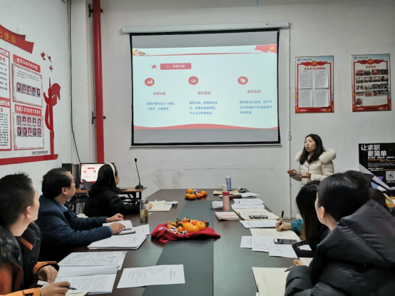 为深入总结教学经验,全省高职高专新进教师说课比赛二等奖获得者王元秋老师在会上再现获奖作品《弘扬抗疫精神,走好新时代护理专业之路》说课比赛现场。解书记现场听课评课。与参会教师对如何如何搞好思政理论课教学开展交流研讨。