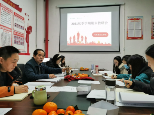 教研会上,马克思主义学院开展了教学总结。解登高听取了思政理论课教学工作汇报,认真查阅了马克思主义学院全体专兼职老师的集体备课教案及提交的期末教学总结材料,对马克思主义学院及本学期全体专兼职老师的教学工作表示了肯定。
