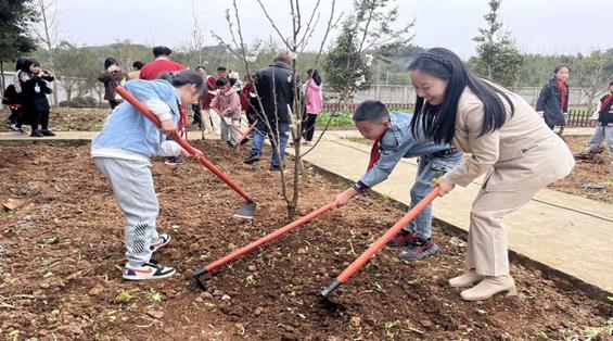 最后两校师生来到我院与马湖小学共建劳动实践基地“信马园”,进行“小手拉大手,小树变大树”植树活动。孩子们与领导老师们一起扶着一棵棵树苗,共同铲土、填土,栽下我院捐赠的象征着友谊和希望的树苗。