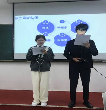 。双方辩手慷慨激昂,唇枪舌战、给大家带来一场精彩的辩论赛。