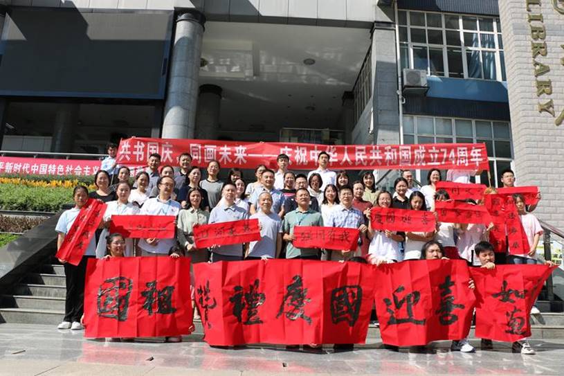 在迎国庆环节,全体党员来到华新学院景观大道,参加华新文创旅游学院组织的“丹青写光辉,翰墨颂国庆”书法主题活动。在大师的指导教授下,师生在景观大道挥毫共书国庆、同画未来,表达对祖国的深切热爱和美好祝福。
