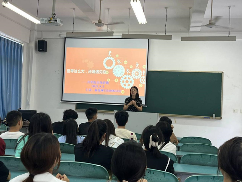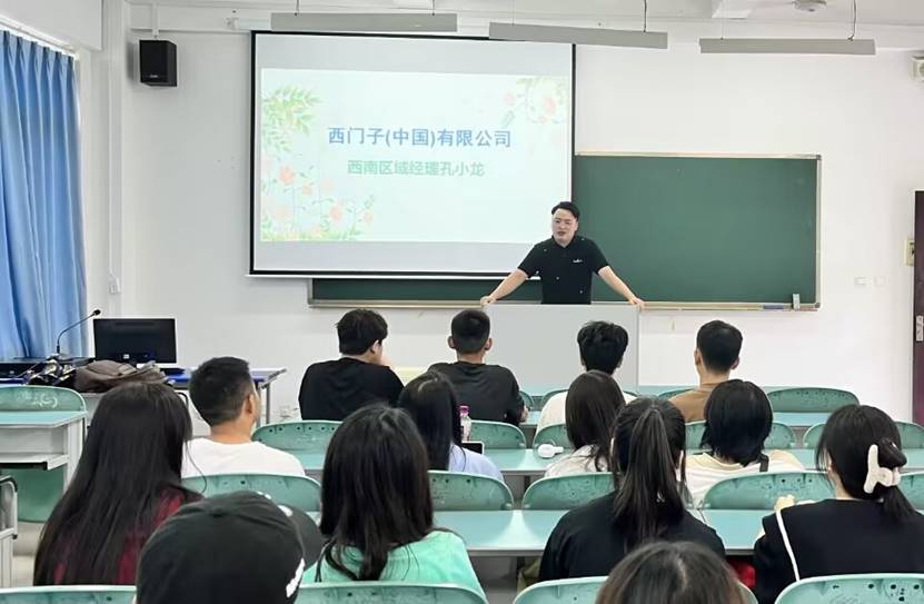 市场营销专业优秀毕业生、市场营销技能大赛国赛选手、西门子(中国)有限公司西南区域经理孔小龙以“营销未来”为主题,结合自身职业履历,和大家进行分享和交流,不因挫折而自弃,不因荣耀而忘本,努力学好专业知识和技能,只有脚踏实地才有飞跃突破。这一场会场充满了热情和正能量,为新生们的学习生活揭开了崭新的一页。