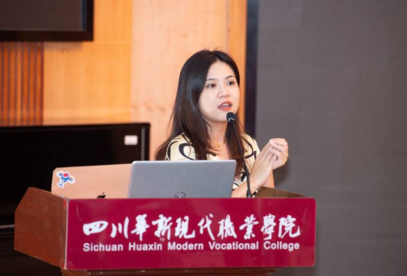 蓝漂集团电商平台运营总监余静上台分享《工厂电商需要什么样的人才》。余静不仅详细地为同学们带来工厂电商的实际案例,还指出了目前工厂电商最需要的是供应型人才、数据型人才、产品型人才、内容型人才,为同学们的未来发展指明了道路。