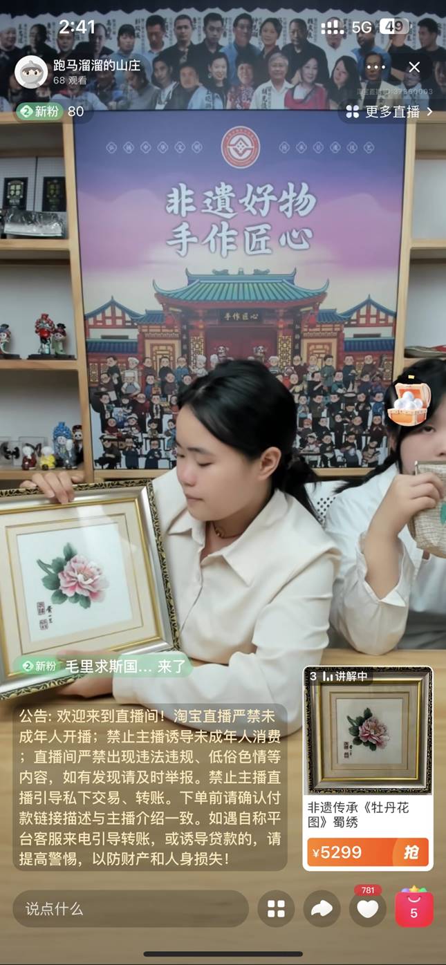 通过电商直播的形式,华新学院数字经济学院积极推动非遗蜀绣技艺的传承和推广。直播实训团队以生动有趣的方式,向观众展示了蜀绣的独特魅力和精湛工艺。同时,直播间上架的蜀绣产品也得到了充分展示,为观众提供了便捷的购买途径,促进了非遗文化与现代商业的融合。