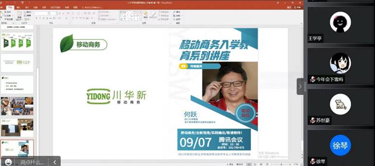 2022年9月7日下午,电商学院移动商务专业开展了22级新生系列入学系列教育第一期活动。时值疫情静态管理期间,移动商务专业师生见面活动通过线上腾讯会议开展见面交流。