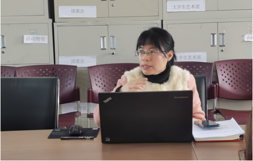 图2:经管学院科研秘书易福蓉老师进行科研政策的传达与解读