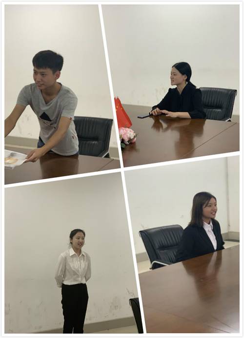 2019年6月4日下午5点,“未来职场精英挑战赛”面试赛环节拉开序幕,比赛地点设在实训楼201商务洽谈实训室。本次比赛邀请到经管学院党支部书记彭娟、商务管理专业负责人易褔蓉、连锁经营管理专业负责人唐艳、资深人力资源教师钟敏敏担任面试官,还邀请中原地产经理卢武、刘鹏飞两位企业嘉宾到场指导。大赛由大学生创新创业协会承办,协会会长李勤、李诚、陈斌、罗静担任主持。
