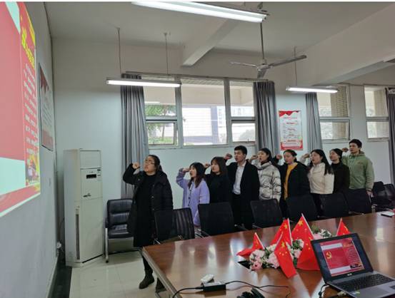 入党宣誓是党员发展教育管理工作的重要环节,也是发展党员过程中庄严神圣的一课。2019年12月23日中午,经济管理学院党支部在知行楼201党员活动室举行了预备党员入党宣誓仪式,仪式由党支部副书记尹镜如同志主持。