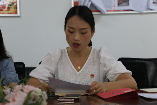 经管学院党支部书记彭娟对新党员提出四点要求。希望新发展党员在政治上,热爱中国共产党,对党忠诚,坚定共产主义信念;思想上加强思想理论学习,提升党性修养;工作上追求进步,充分发挥榜样的力量;生活中要力行勤俭节约,注重个人党风廉政建设。