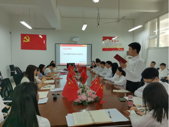 2021年6月25日下午,经济管理学院党支部在知行楼201党员活动室举行了新党员入党宣誓仪式。四川华新现代职业学院副院长、经济管理学院院长涂捷,经管学院党员老师和学生党员出席了本次宣誓仪式。