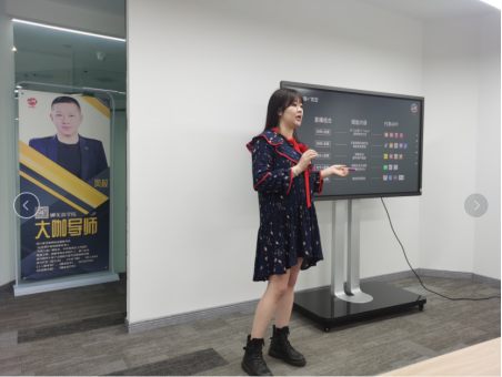 接着,在黄总的带领下师生们参观了公司直播间,亲身感受到了直播现场。随后,金牌导师若馨老师以直播为主题,解析了常见的直播平台及其特点、平台之间的优劣对比、直播规则、行为逻辑、控场技巧、销售技巧等。