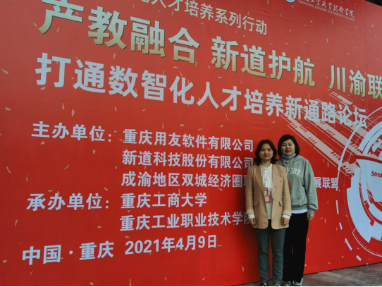 2021年4月9日,经济管理学院副院长陈欣和会计专业负责人李贞凤老师参加了由新道科技股份有限公司主办的“产教融合 新道护航——打造数智化人才培养新通路论坛”。