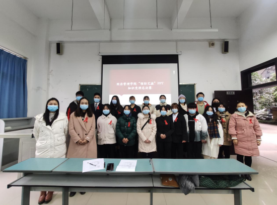 12月14日下午,四川华新现代职业学院经济管理学院在博学楼104举办“关爱生命,预防艾滋”主题演讲比赛。比赛由经济管理学院党支部党员服务站主办,经济管理学院学生会、青协联合承办,旨在增进同学们对艾滋病的认识,学习预防艾滋病的相关知识。决赛由经济管理学院党支部书记彭娟、副书记尹镜如、瞿莉老师、李存君老师、方蓓老师、杜敏老师担任评委,经过初赛的比拼,经济管理学院共有8支队伍进入决赛。