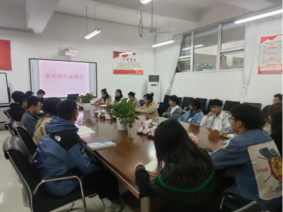 为了解新生入校以来的生活近况、学习进度和困难,10月26日下午16:30,我校新生师生座谈会在知行楼201党员活动室举行。经济管理学院党支部副书记尹镜如老师,辅导员代表杜敏老师,各专业教师代表唐艳、熊万春和徐建群老师出席了本次会议。