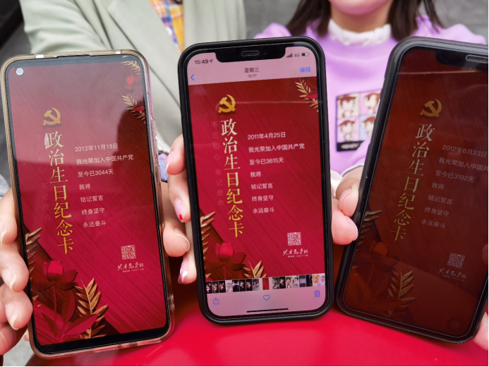 主题活动强党性。党员的政治生命从入党开始,入党之日即为党员的“政治生日”。3月19日,信息工程学院党支部以党员过“政治生日”为契机,组织全体党员围绕“我的初心使命”开展不忘政治生日、牢记党员身份主题党日活动,要求党员在学党史、讲党史、用党史上发挥好示范作用。“这份由‘共产党员网’制作的电子纪念卡,诚挚的政治生日寄语,传达着党的关怀,是荣耀也是激励,它承载着组织对每一位党员的殷殷期盼,提醒大家无论何时不忘入党初心,无论何地牢记党员身份。”党支部书记指着手机上鲜红的“生日卡”说。