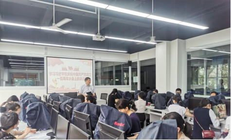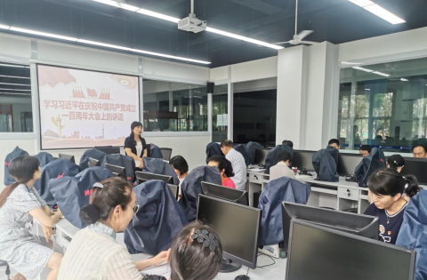 2021年7月1日下午,医护学院党支部组织全院教职员工在数码互动实训室开展专题学习,学习习近平总书记在庆祝中国共产党成立一百周年大会上的讲话和在“七一勋章”颁授仪式上的讲话。