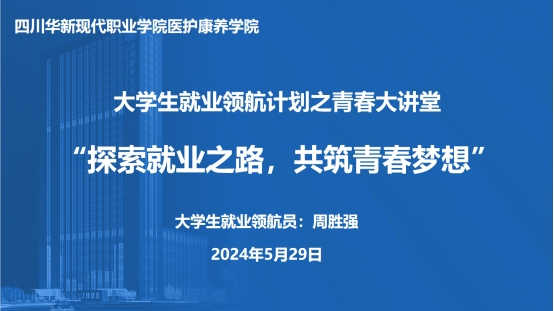 2024年5月29日下午,医护康养学院团总支精心策划并举办了主题为“就业领航计划之青春大讲堂”的主题团日活动。此次活动旨在为广大在校学生提供宝贵的就业指导和经验分享,特邀了已经毕业的护理专业优秀毕业生周胜强回校进行就业交流。