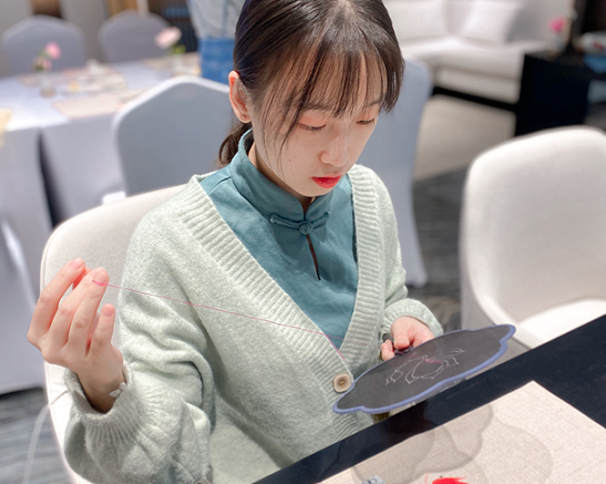 刘力:2018届蜀绣专业毕业生,四川省优秀大学毕业生,好书法和国画,2018年拜入四川省工艺美术大师尹嘉伟门下。毕业后一直处在蜀绣行业,经双面绣学习、销售、产品拍摄后现从事蜀绣产品研发工作内容。
