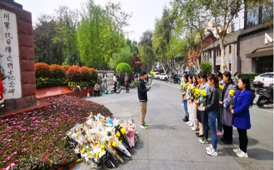 全体党员参观了川军抗日阵亡将士纪念碑。在纪念碑前,党办院办外事办党支部书记王力洪同志带领学习和了解川军抗日阵亡将士纪念碑的相关历史。川军抗日阵亡将士纪念碑,又名“无名英雄纪念碑”。1944年,为了纪念在抗日战争中阵亡的60多万川军而修建,由雕塑大师刘开渠设计并取名“川军抗日阵亡将士纪念碑”,最终选中张朗轩成为最早的“无名英纪念碑”雕塑原型模特。当时的纪念碑立于成都市老东门城门内,后因铜像被毁、城市道路改扩建等原因搬迁至人民公园。纪念碑上一位川军士兵,穿着短裤、绑着绑腿,背着斗笠大刀、手握步枪,胸前悬挂两颗手榴弹,注视前方,就像即将冲锋的战士。