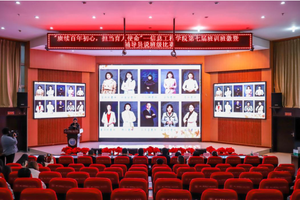 2021年11月24日星期三下午,信息工程学院第七届班训班徽比赛暨首届辅导员说班级比赛在我校报告厅顺利召开。莅临本次比赛的领导、嘉宾有四川华新现代职业学院副院长周勇老师,四川长江职业学院学生发展处副处长岳好山老师,四川财经职业学院“发哥辅导员工作室”负责人季宁宁老师及四川国际标榜职业学院艺术与设计学院分团委书记郑大伟老师,华新学院学生处王艳芳老师,学院团委刘畅老师;信息工程学院、互联网学院、腾讯云大数据学院的领导、老师和学生代表等参与了此次活动。