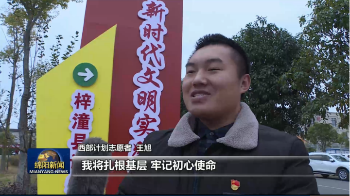 王旭同志作为一名西部计划志愿者成员,分配到梓潼县许州镇工作,刚走入刚做岗位两个月,深入走访群众六十余户,在疫情防控期间勇当先锋深入第一线。他在接受绵阳广播电视台“绵阳新闻”记者采访中谈到,作为一名服务于基层的西部计划志愿者,我将扎根基层,牢记初心使命,发扬志愿服务精神,为乡村振兴贡献自己的一份力量。