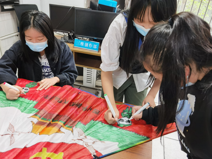 在动漫专业杨烨老师的精心指导下,各组组员充分发挥自己的想象力和创造力,共同DIY风筝。团队合作方便组员们集思广益,灵活性更高,组员们纷纷在风筝上手绘自己喜欢的图案,对于他们来说,这是属于他们独一无二的创意图案。同学们祈愿大运,祈愿党的二十大胜利召开,用专业知识与五彩的画笔表达心中的美好祝福。