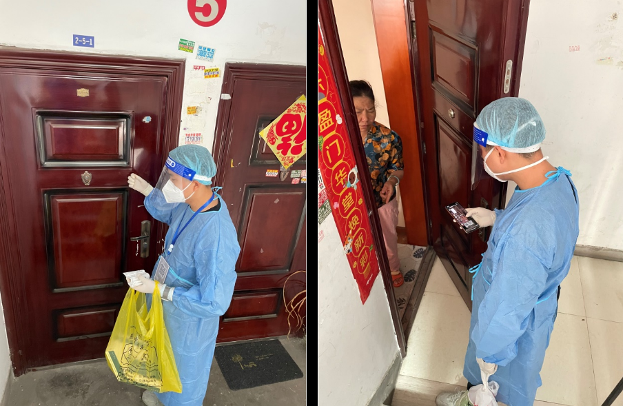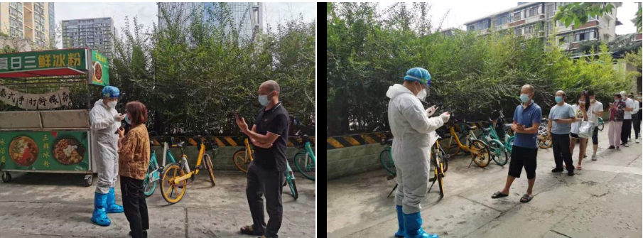2022级计算机应用(扩招班)梁琦和伍忠言同学在成都市新都区三河街道核工业小区进行高风险楼栋排查和物资配送工作。