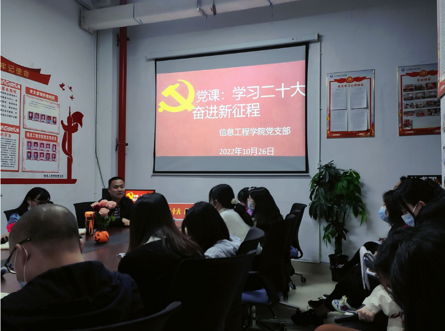 为深入学习贯彻党的二十大精神,2022年10月26日下午信息工程学院党支部副书记张启才同志为全体教师上了主题为“学习二十大奋进新征程”的党课。全体教师结合学习党的二十大精神,交流了学习体会。
