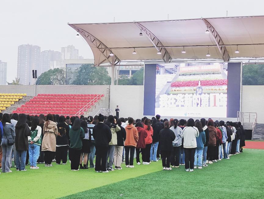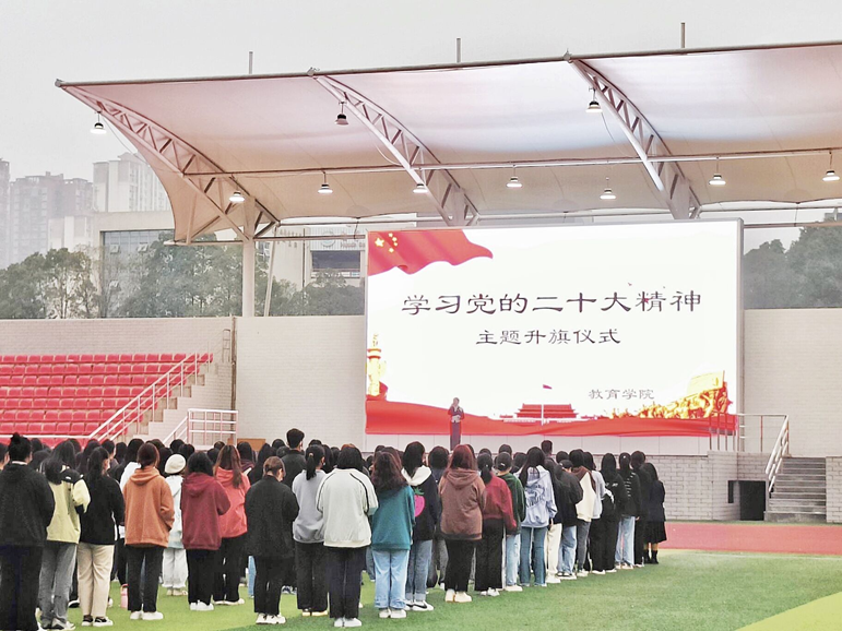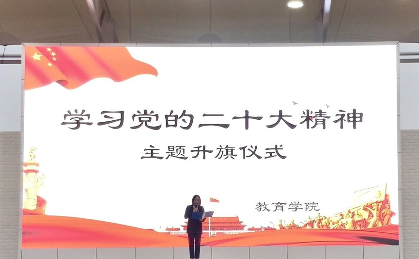 在全党全国上下热议党的二十大之际,2022年11月7日上午7时40分,教育学院在运动场举行了“学习党的二十大精神—让青春与党同行”主题升旗仪式。