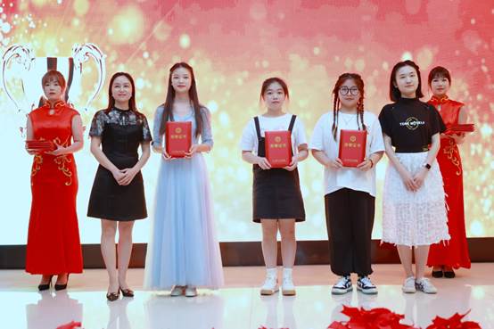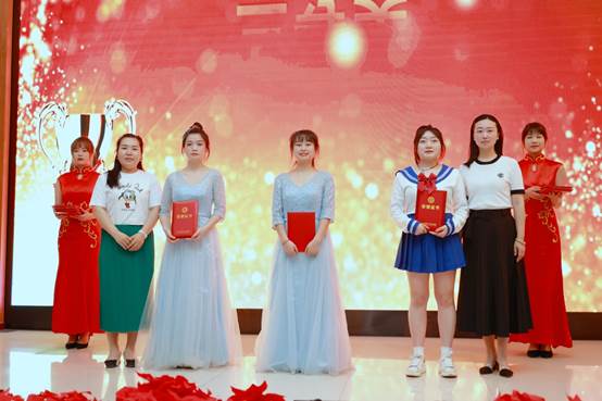 图为:学院专业教师为歌舞组三等奖《美少女战士》、《傣家小妹》、《加油鸭》颁奖