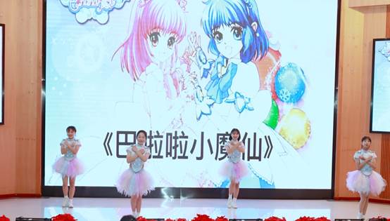 图为:幼儿歌舞表演《巴啦啦小魔仙》