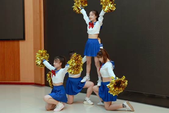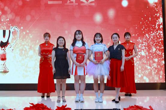 图为:学院、部门领导为歌舞组二等奖《巴啦啦小魔仙》、《青春啦啦操》颁奖