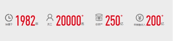 2020数据:员工2万名,总资产250亿元、销售收入200 多亿元、纳税7亿元。