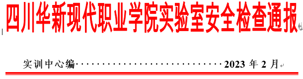 按照教育部、四川省教育厅及四川华新现代职业学院实验室安全管理规定相关要求,2023年2月27日实训中心、保卫处对全校实验室安全进行了全面检查,重点对用电安全、消防安全等问题进行了排查,现将有关情况通报如下。